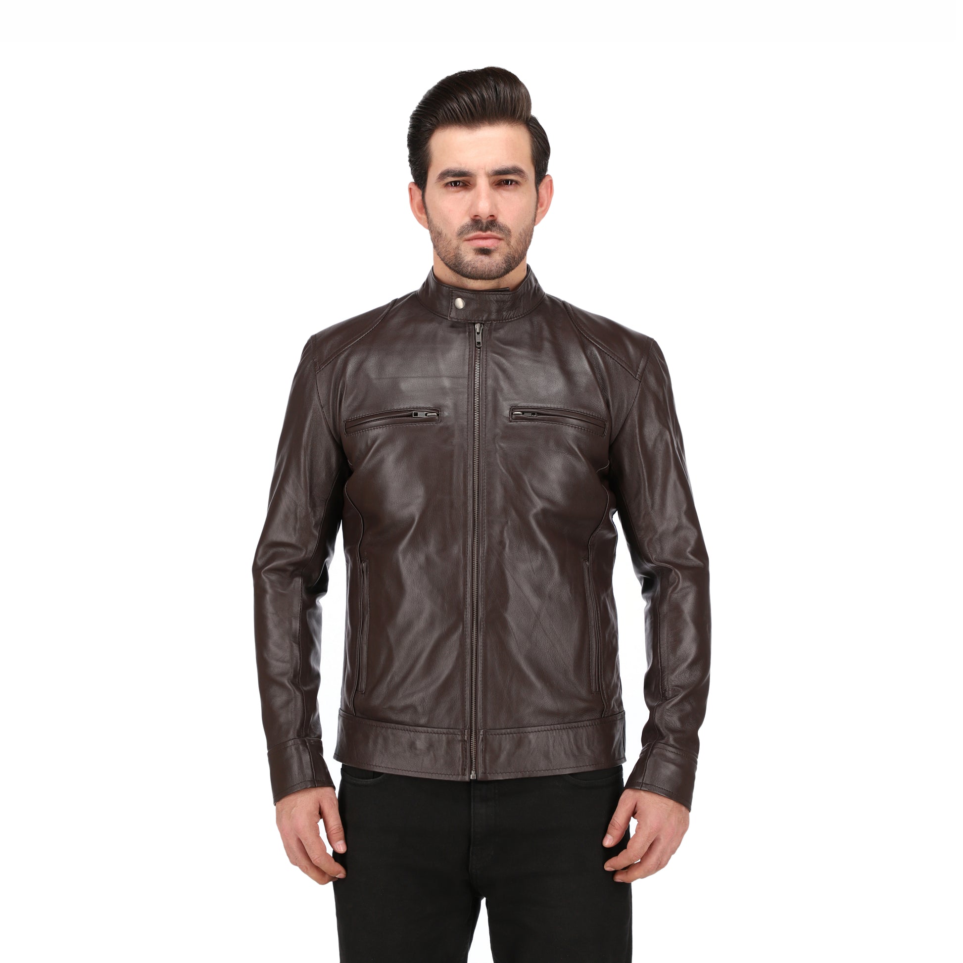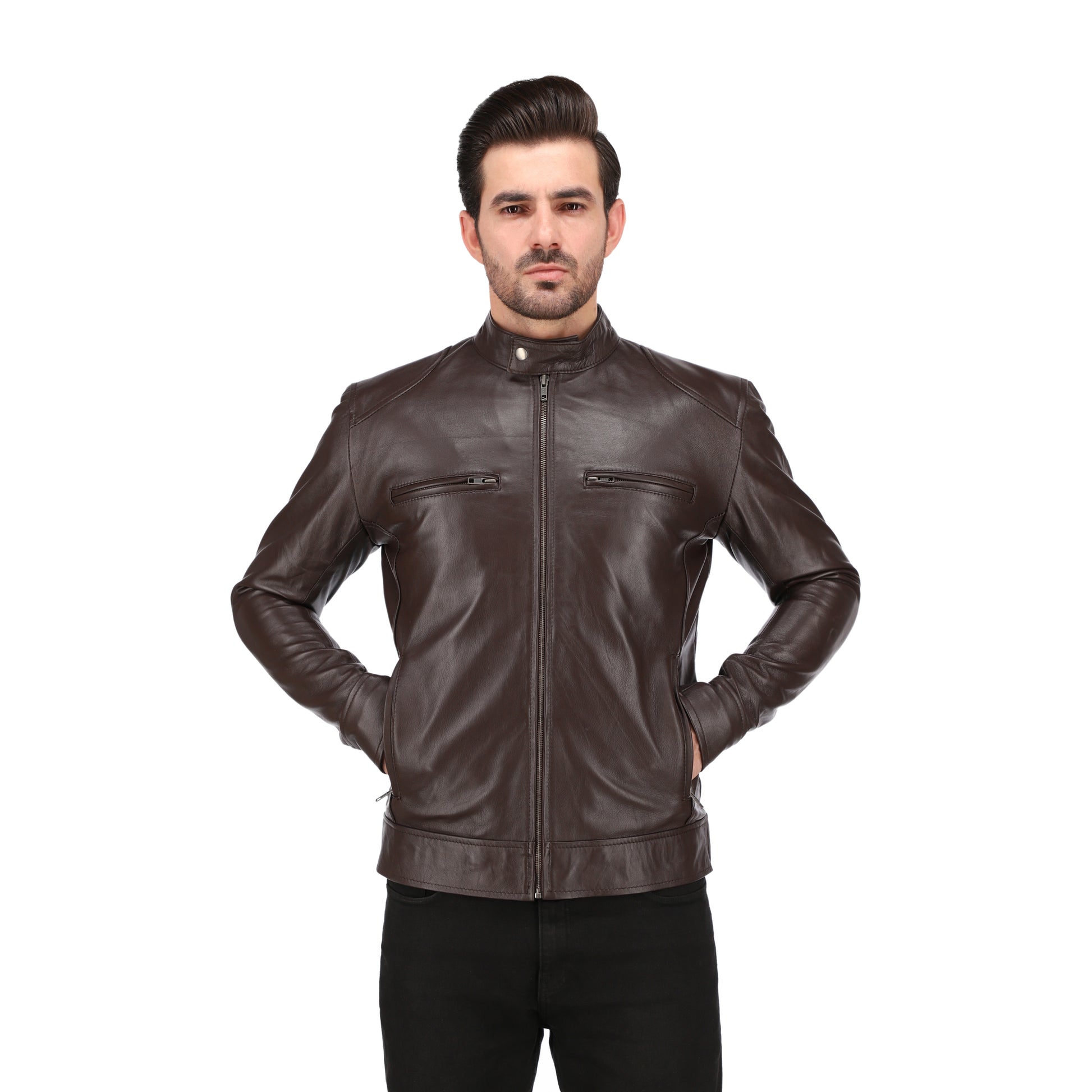 Men's Fashion Brown Cafe Racer Leather Biker Jacket