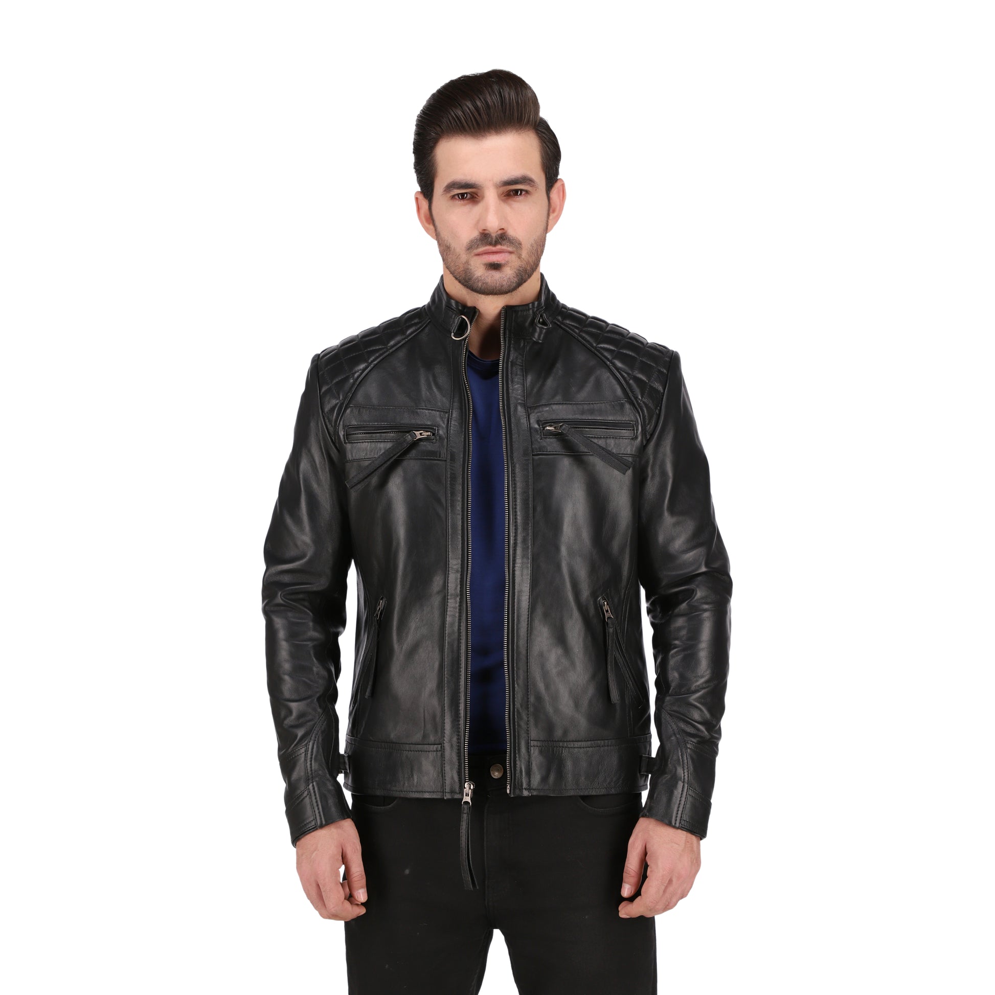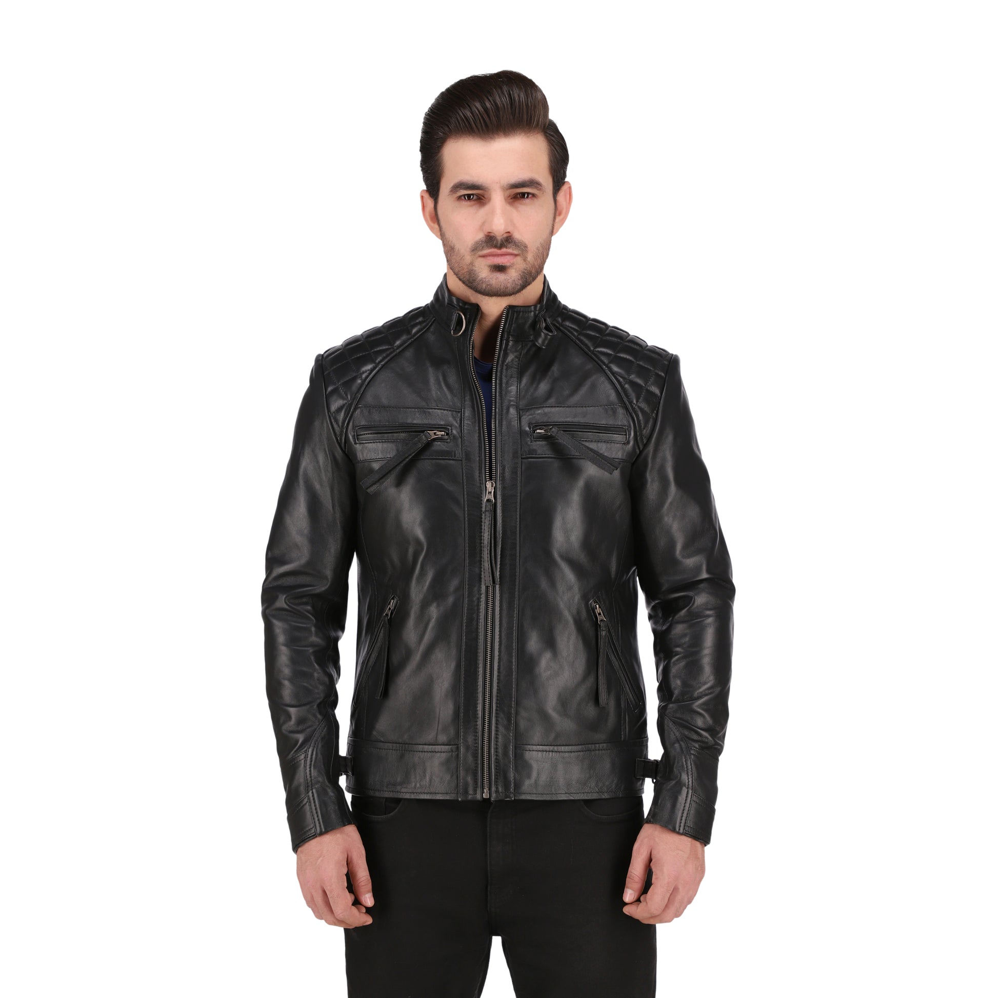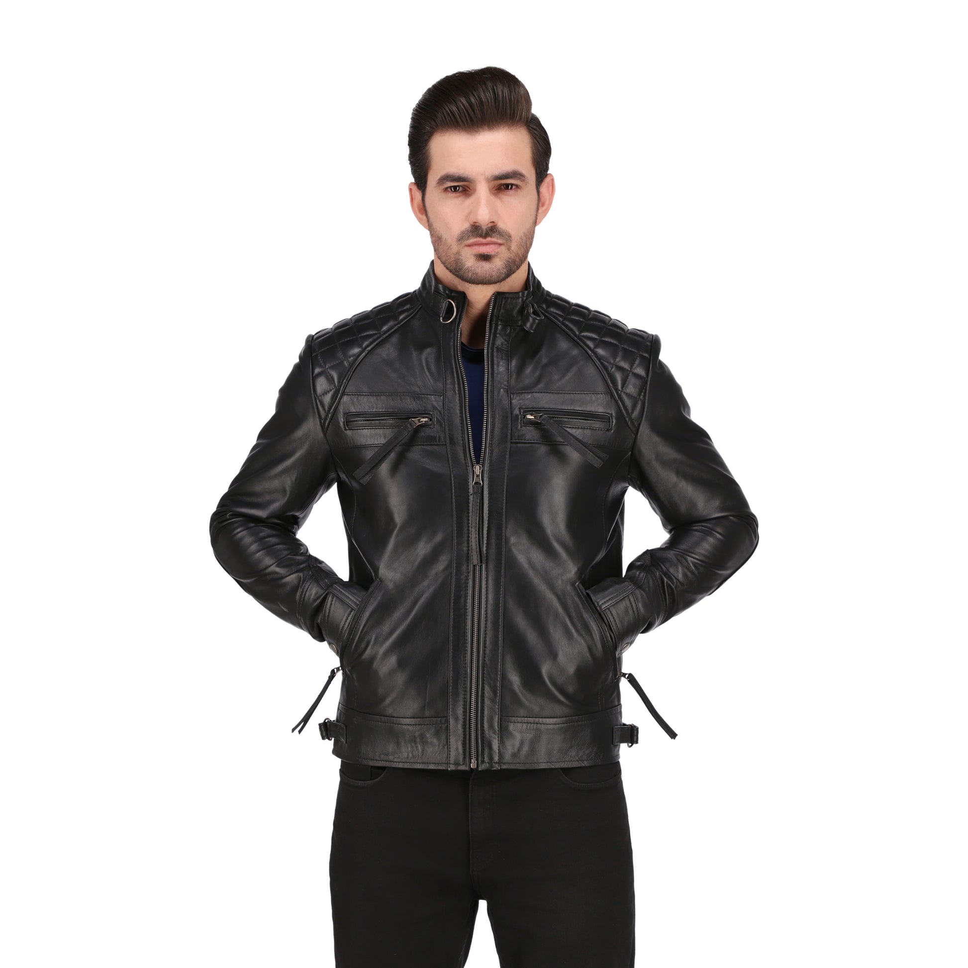 Embrace your rebel spirit with the Men's Cognac Black Quilted Cafe Racer Leather Jacket. Made with precision and an eye for detail, this jacket effortlessly combines a timeless cafe racer style with unique accents that exude a vintage edge and self-assuredness. The luxurious black leather adds personality and a hint of warmth, making it the perfect choice for any occasion.