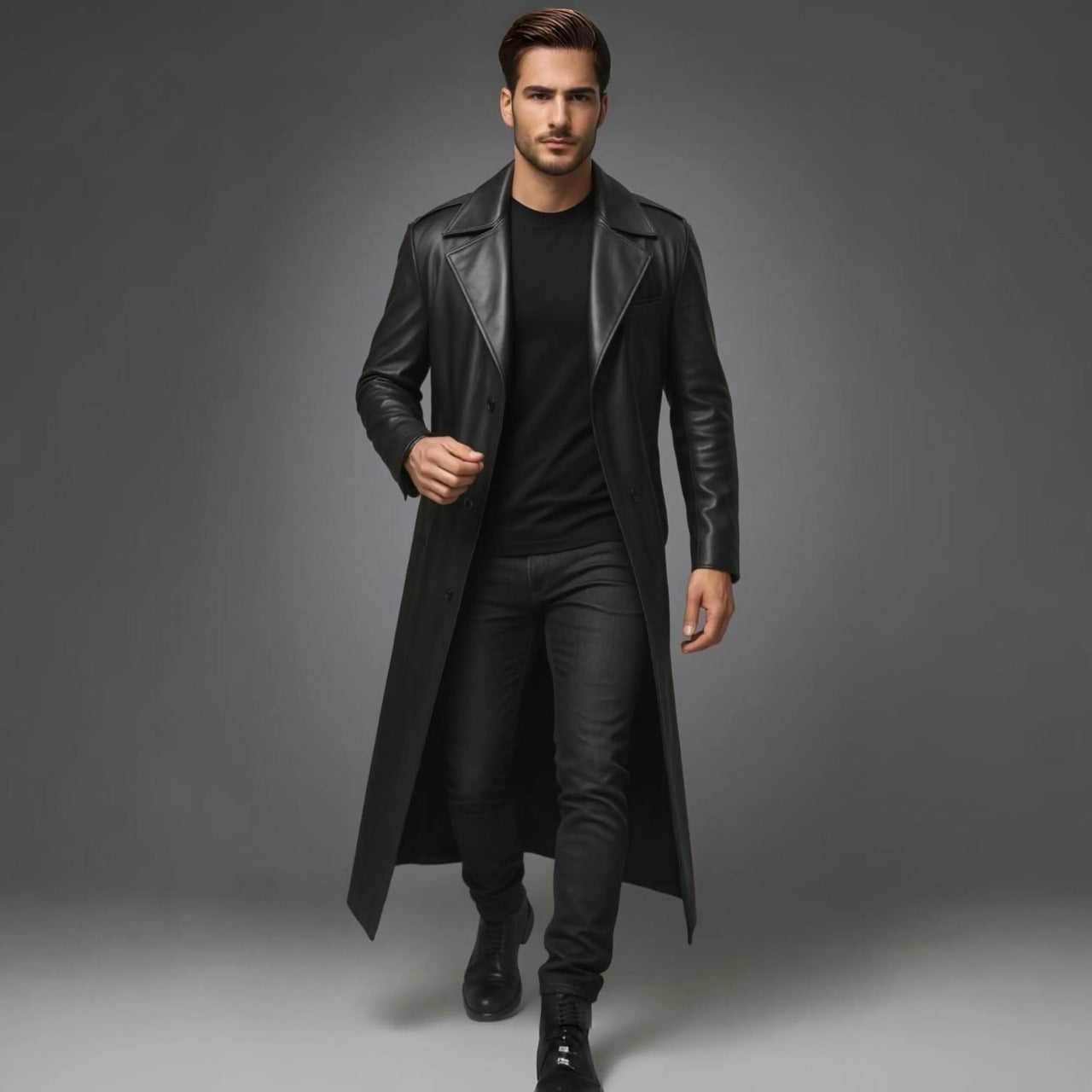 Step into timeless elegance with this Handmade Genuine Sheep Leather Trench Coat - a statement piece designed for men who value luxury, style, and versatility. Whether you’re drawn to the bold aesthetic of Gothic, Steampunk, or modern streetwear, this long leather coat transforms any outfit into an iconic look.