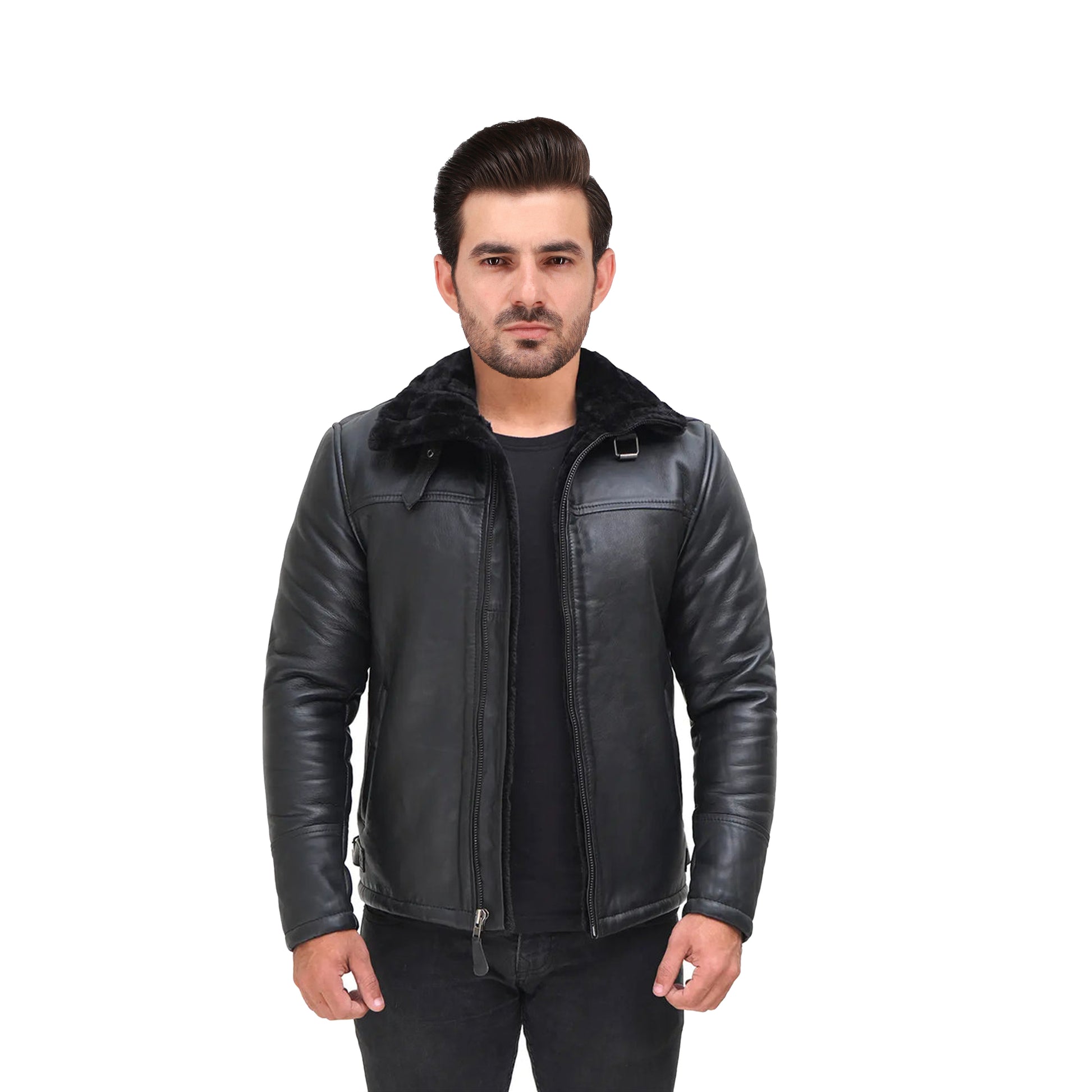 Experience the perfect blend of style and warmth with the Ryan Bomber Black Mens Shearling Jackets. This expertly crafted jacket, featuring high-quality black leather and a soft shearling lining, captures the essence of timeless aviation-inspired fashion.
